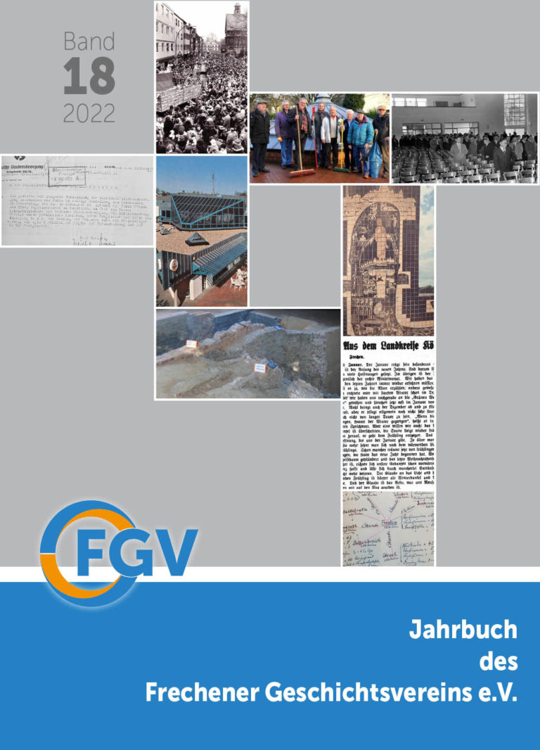 Zum ersten Mal seit Anfang 2020 veröffentlicht der Frechener Geschichtsverein e.V. wieder ein reguläres Halbjahresprogramm. 10 Vorträge, Exkursionen und Ausstellungsbesuche laden dazu ein, sich mit der Geschichte Frechens und der Region auseinanderzusetzen. Die Termine im Einzelnen: Die Frechener StolpersteineVortrag von Margret Brück und Jochen Menge, Dienstag, 14. Februar 2023 – 19 Uhr Die Ford-Werke in Köln-NiehlWerksbesichtigung, Donnerstag, 23. Februar 2023 – 12:45 Uhr Das Historische Archiv der Stadt KölnFührung im größten Kommunalarchiv Deutschlands, Mittwoch, 8. März 2023